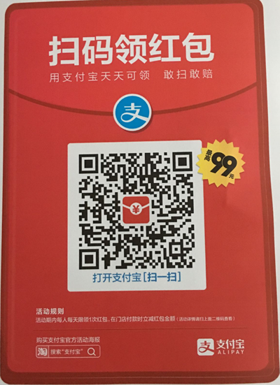 支付寶付款可以先掃下面紅包。