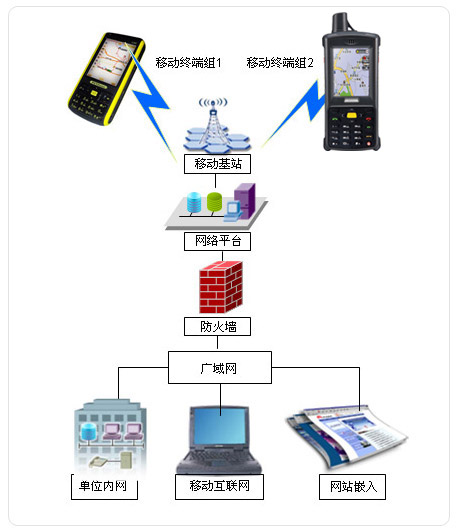 本系統采用特色的專業GPS終端,配合專業電子地圖圖資,在網絡平臺的支持下,通過基于瀏覽器(B/S)和客戶端(C/S)聯合的形式,實現現場人員、車輛、重要物資的定位監控與指揮調度。